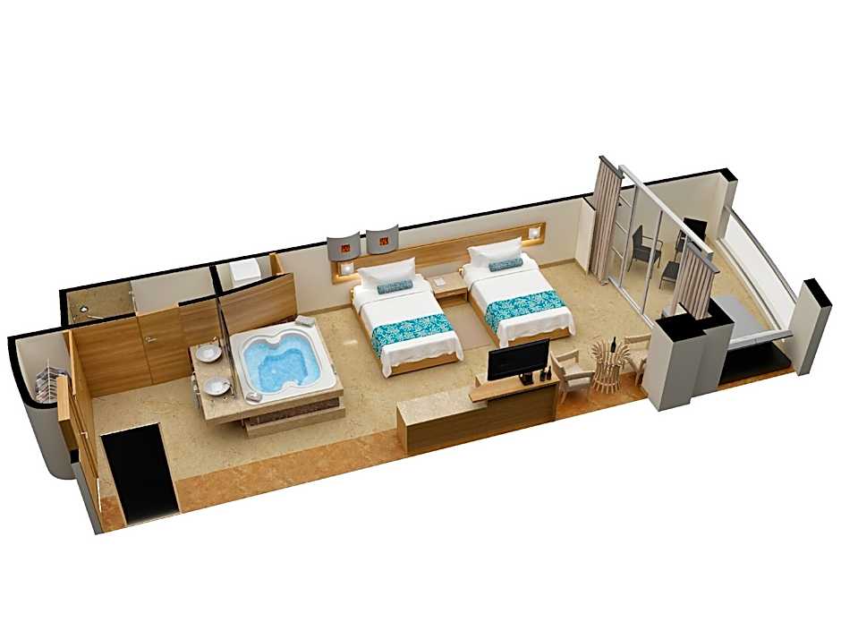 Deluxe Lagoon View includes either a double bed 131-150 width or a king-size bed 150-183 width and has a Disability-friendly bathroom.